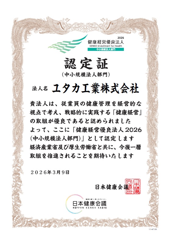 昨年に引き続き、当社は経済産業省が認定する「健康経営優良法人制度」において、「中小規模法人部門」の「健康経営優良法人2026」に認定されました。