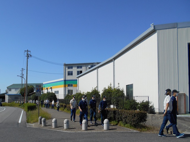 10月30日、第3工場、第4工場の社員を対象に直下型地震発生を想定した避難訓練を行ないました。
