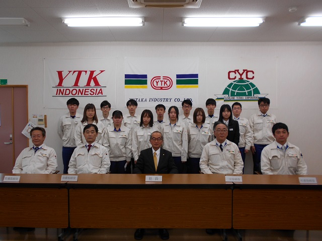 今年は大卒4名、高卒10名の合計14名を新しくユタカ工業の仲間として
