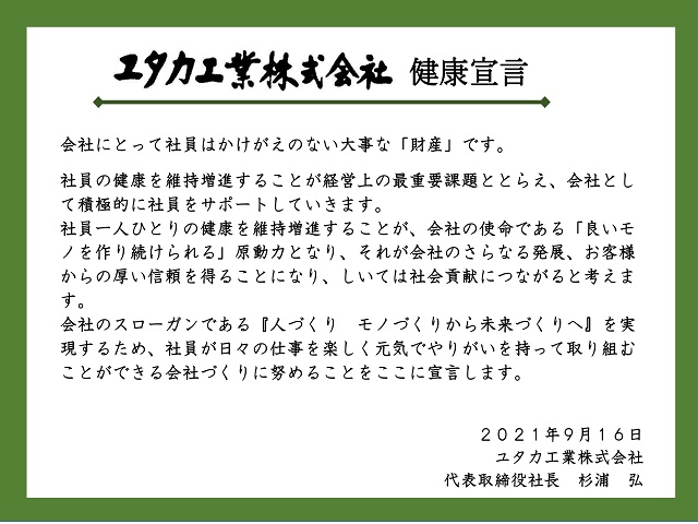 ユタカ工業株式会社 健康宣言
