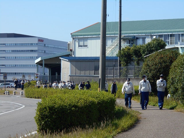10月28日、第1工場、第2工場の社員を対象に直下型地震発生を想定した避難訓練を行ないました。