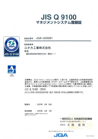 この度弊社は2022年6月10日付けでJIS Q 9100を取得しました。