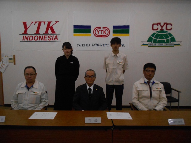 社長をはじめ配属予定の部門長が参加して、激励の言葉をかけました。