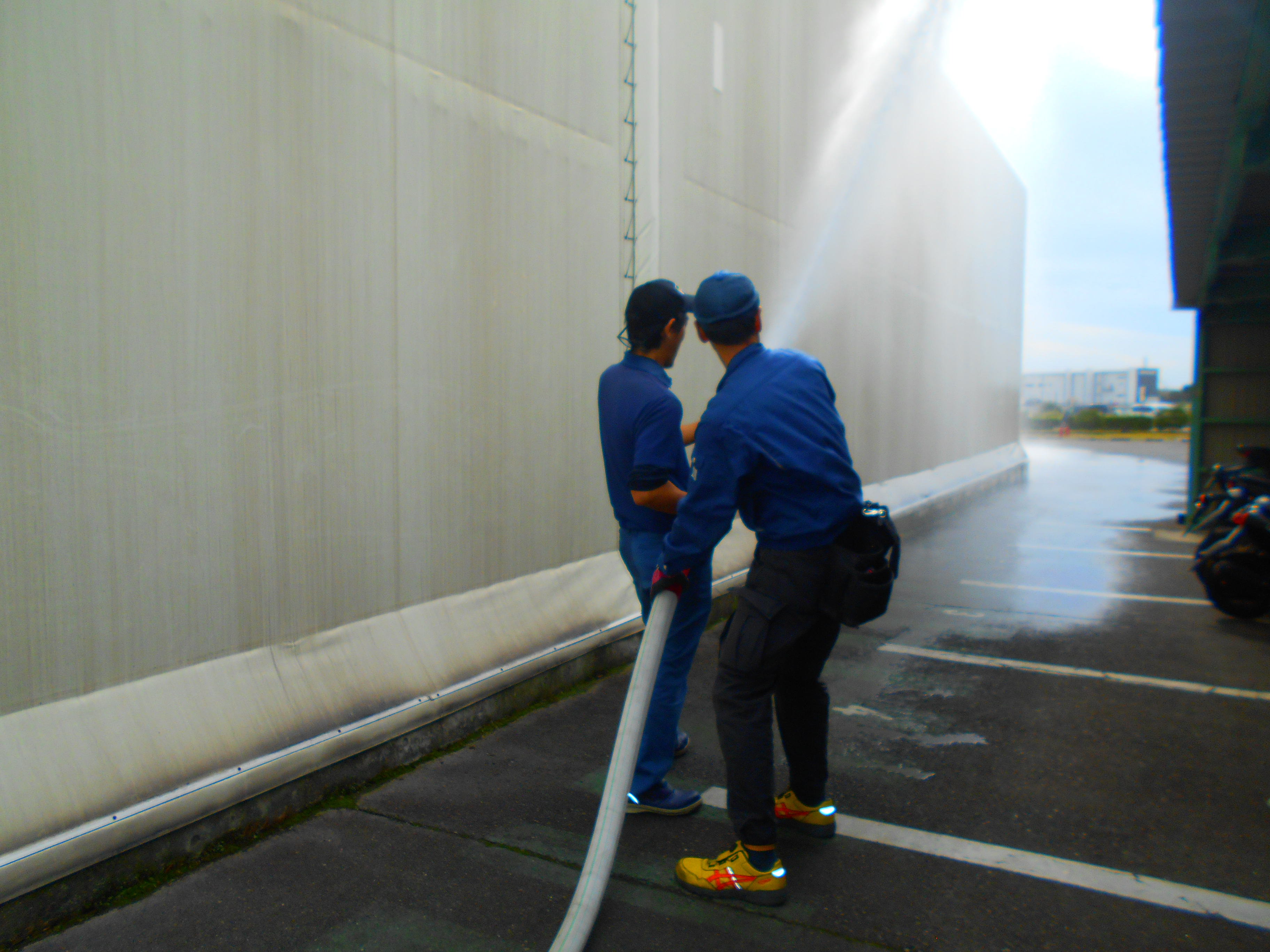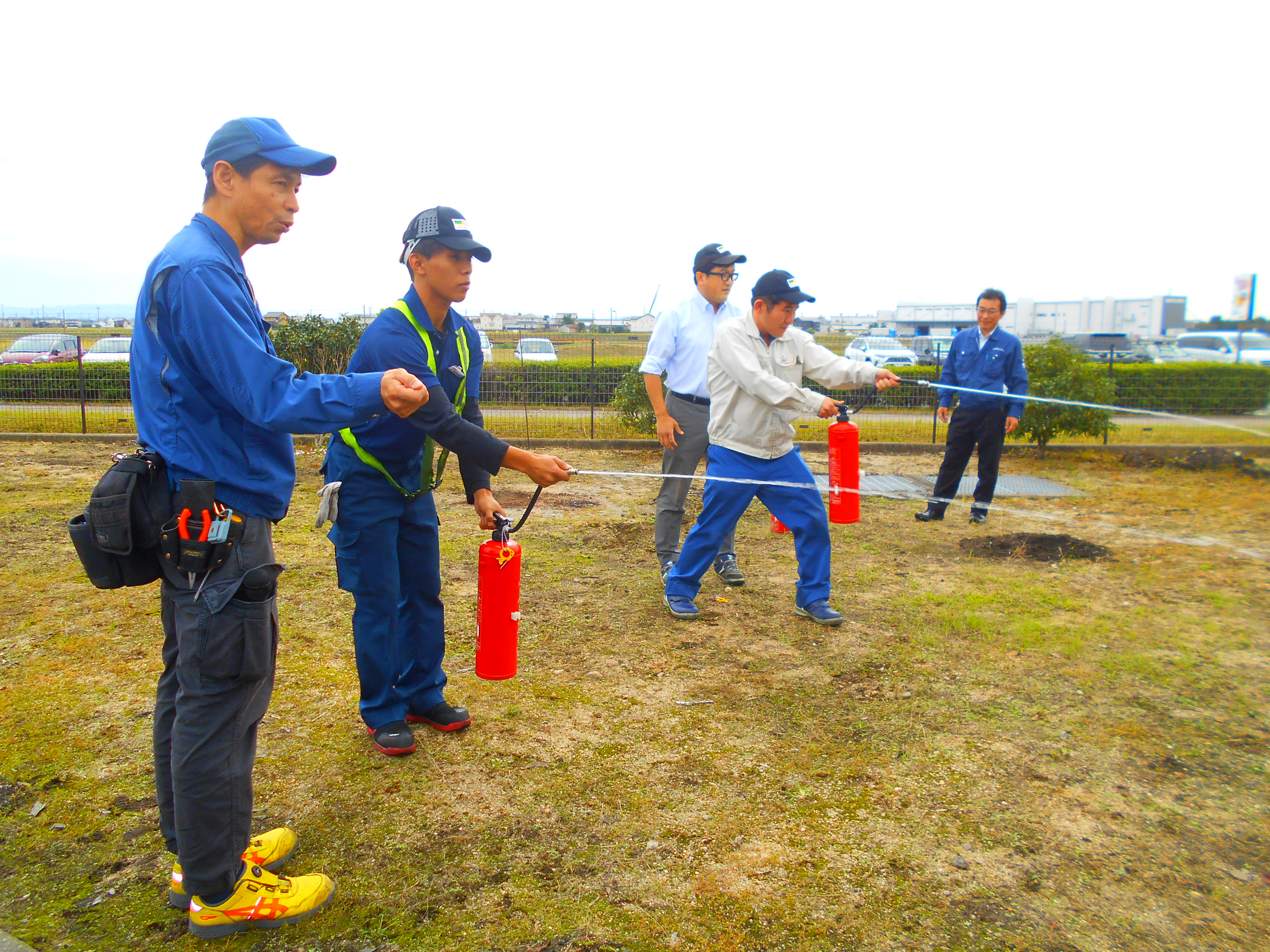 その後、消火器を使用した初期消火訓練と、職制を対象に消火栓の使用教育を行いました。