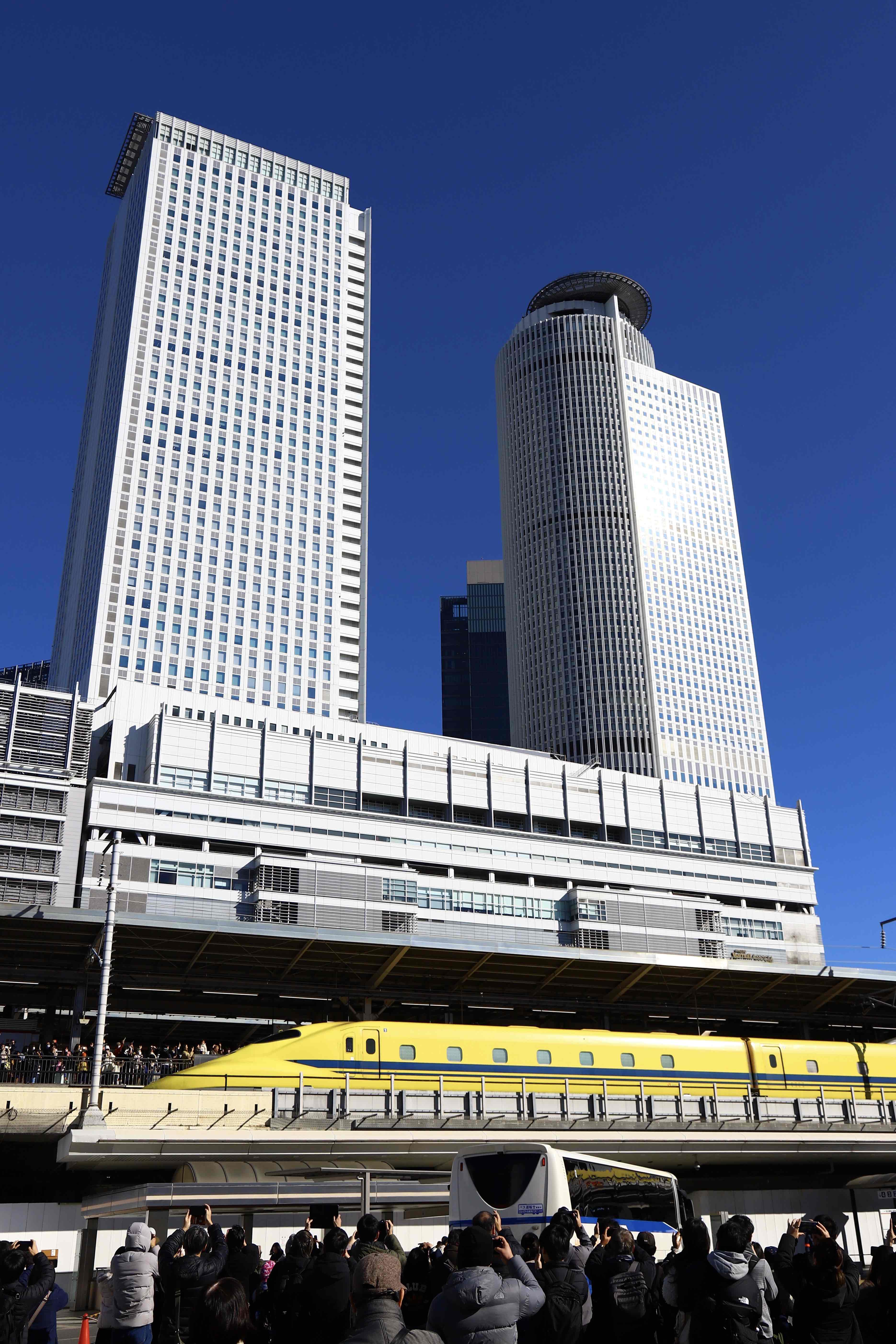 一目見ようと多くの人がホームや駅前ロータリーに詰めかけていました。